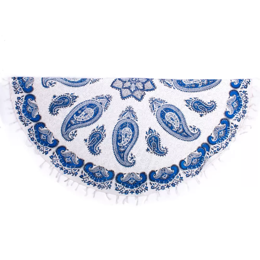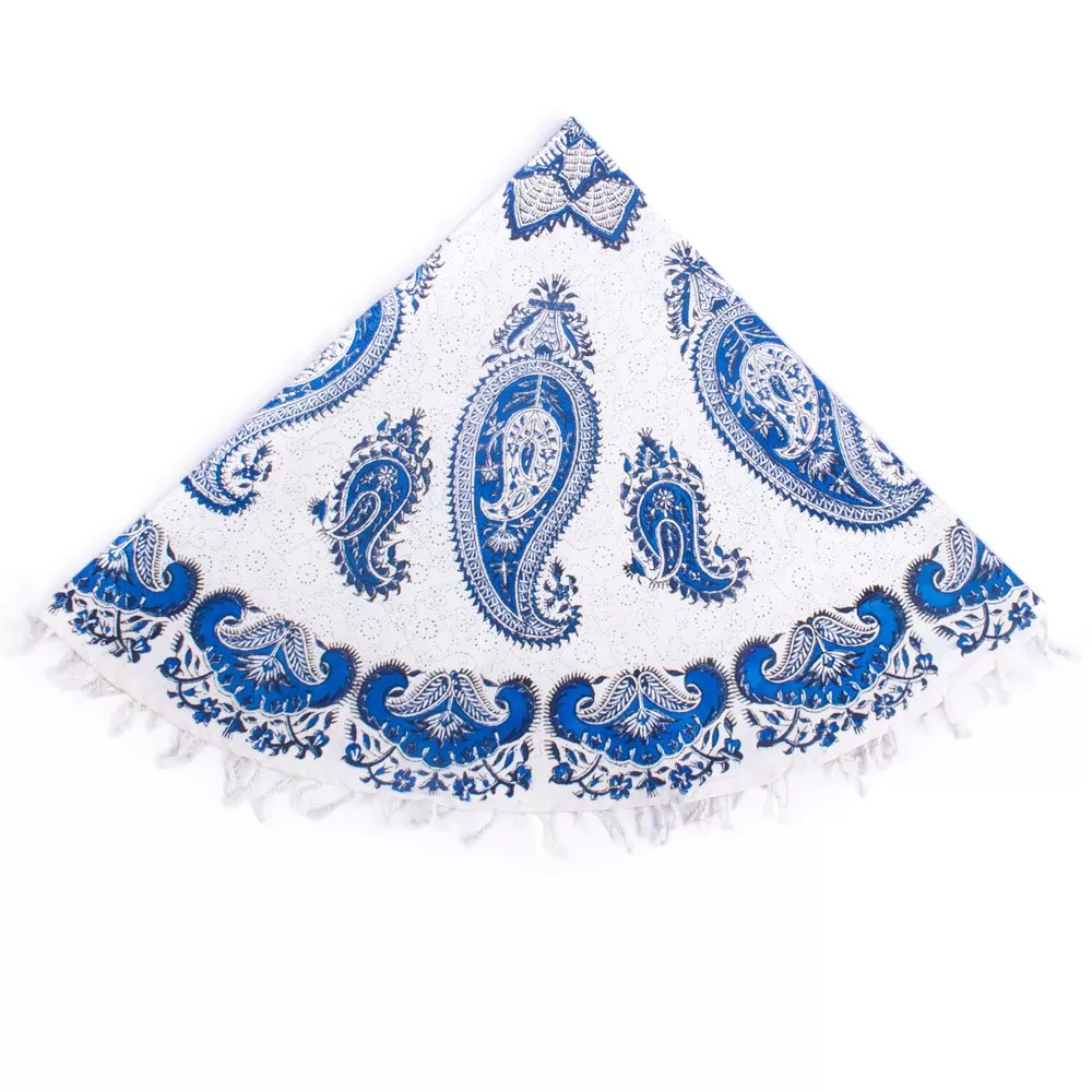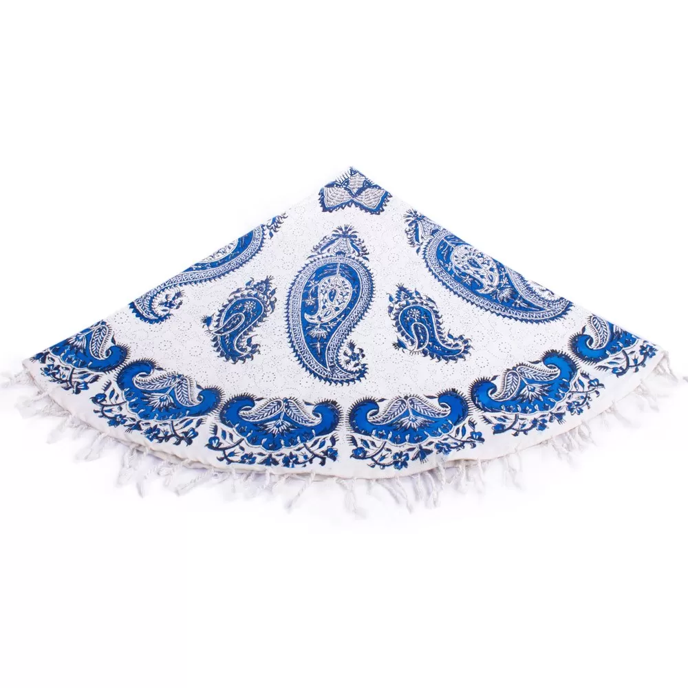 رومیزی قلمکار گرد یک متری بته جقه آبی