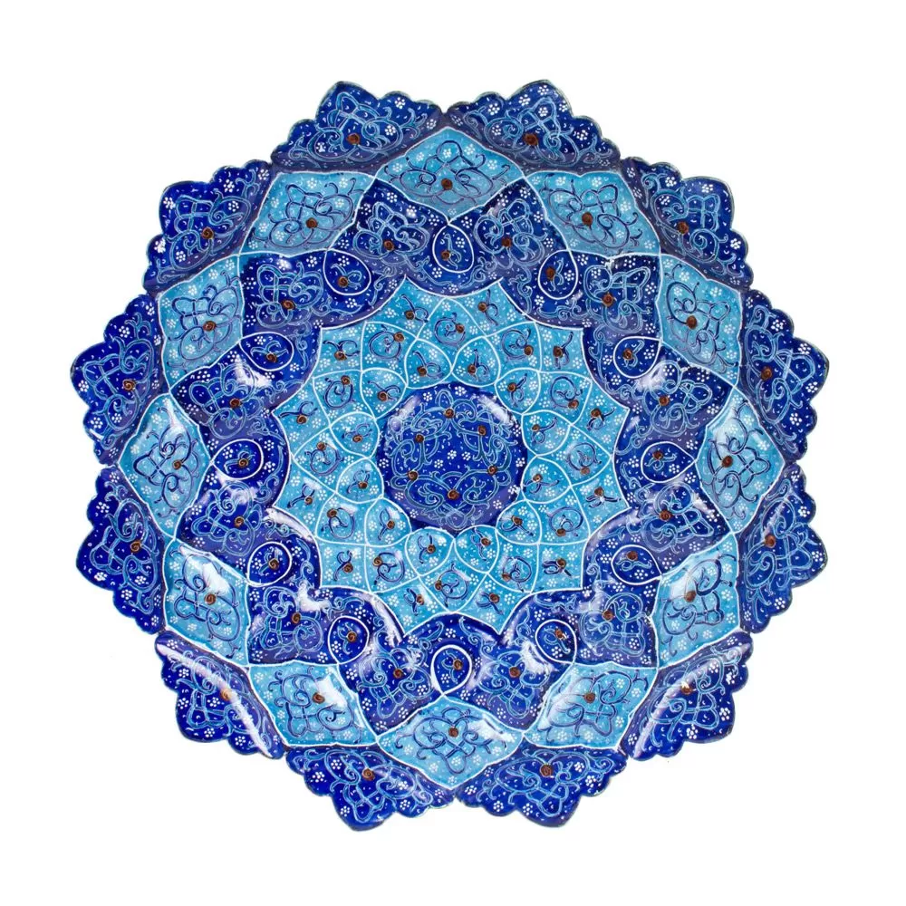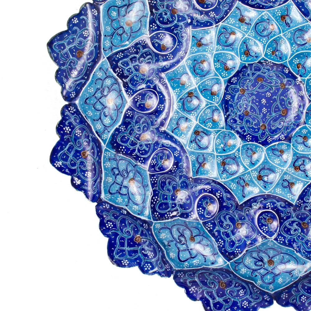 بشقاب میناکاری نقاشی 25 سانتیمتری با رنگ آسمانی و جلای لاجوردی خود می تواند شما را از میانه ی روزگار مدرن و بی رنگ صنعتی با دستان هنرمند میناکار به میانه ی آسمان برده و نقش ها زیبای آن آرامشی به یاد ماندنی را برای شما به ارمغان آورد.