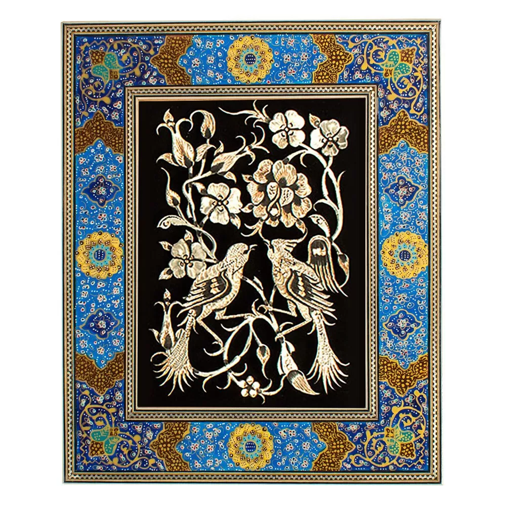 - پلاک قلمزنی مسی و قاب چوبی خاتم کاری نقاشی