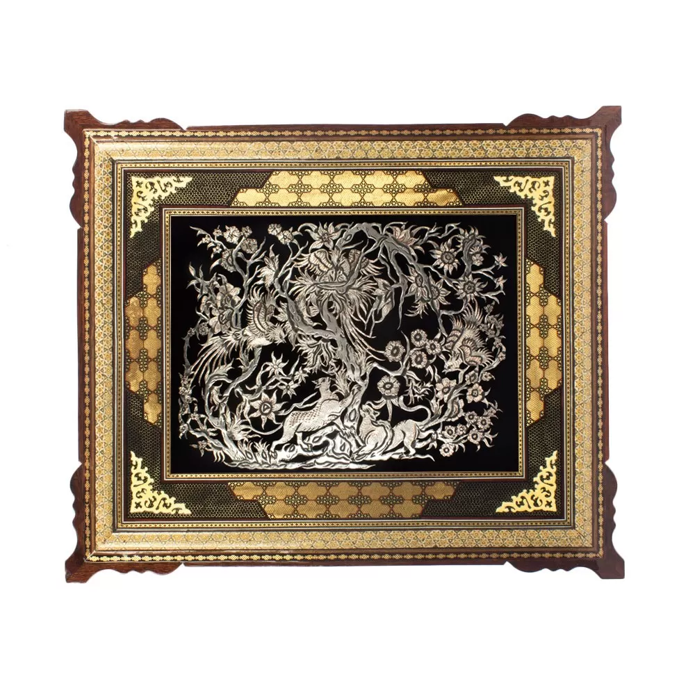 تابلوی قلمزنی 40×50 سانتیمتری با قاب خاتم نفیس