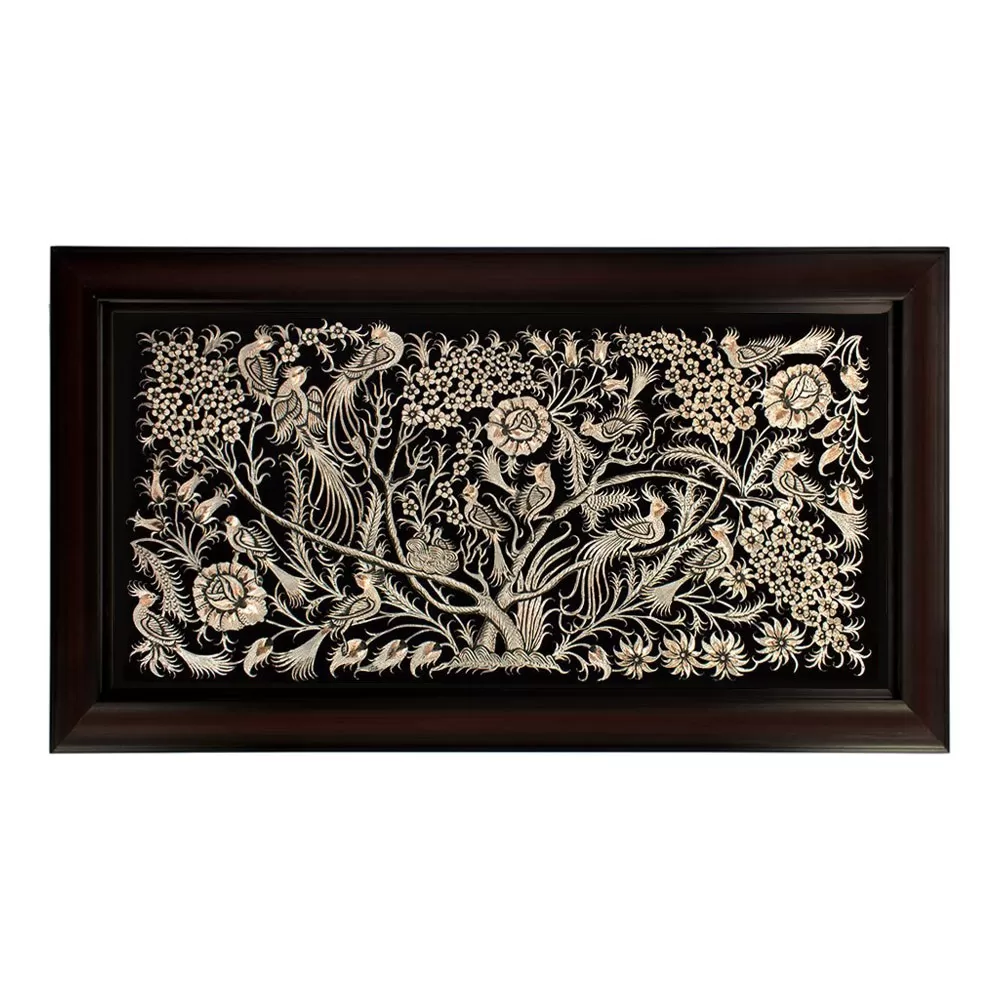 برای علاقمندان به هنرهای ایرانی قرار دادن این تابلوی زیبای قلمزنی‌ گل و مرغ به عنوان تزیین روی دیوار انتخاب مناسبی به نظرمی‌رسد. این تابلوی دیواری بزرگ ، هدیه مناسبی برای مدیران , هدیه خانه نو, هدیه به نو عروس, هدیه...