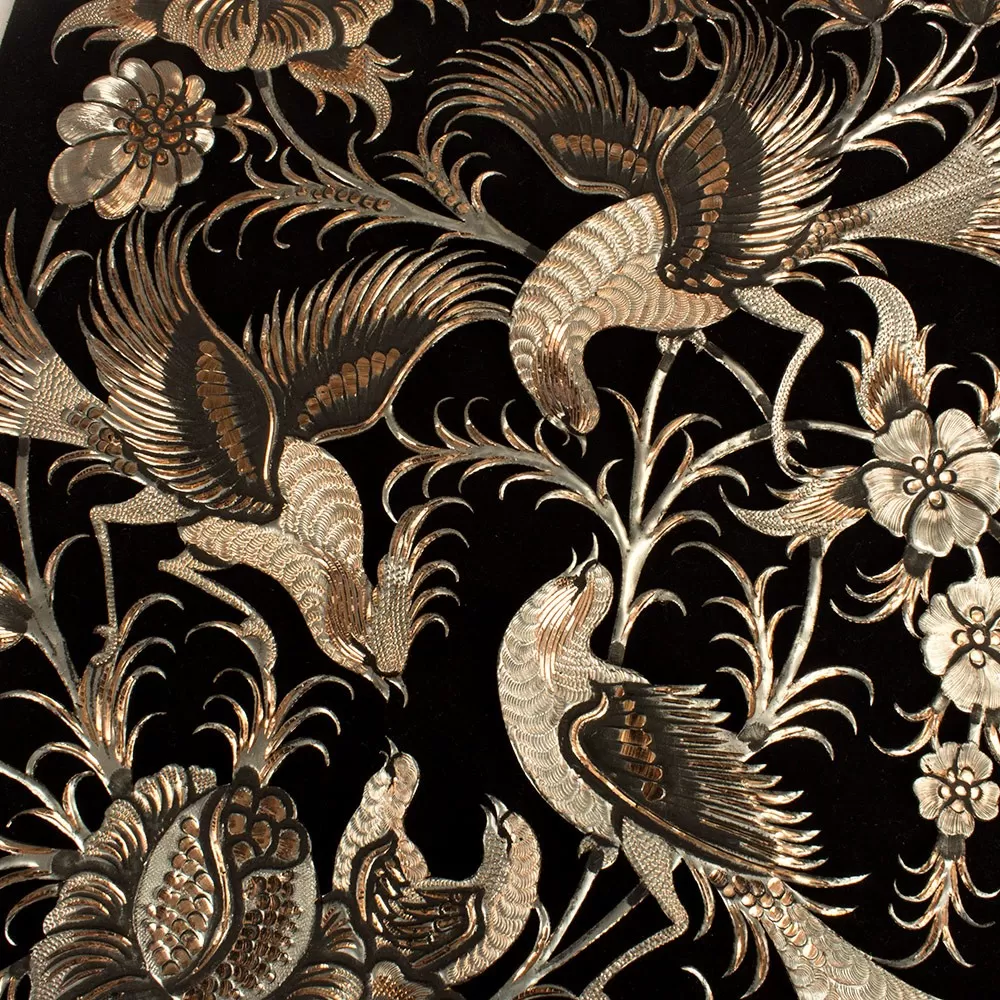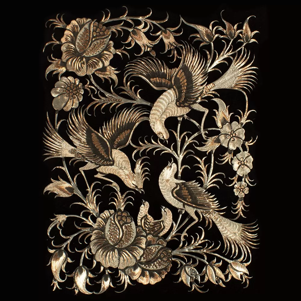 تابلوی قلمزنی گل و مرغ 62×52 سانتیمتری