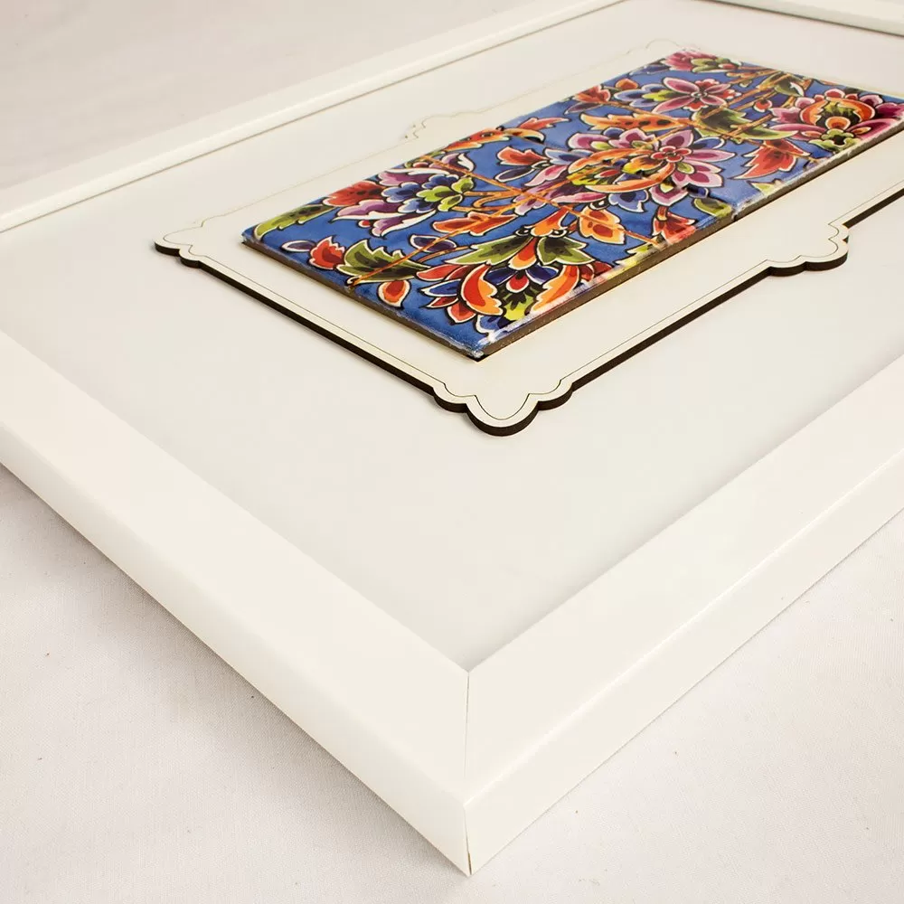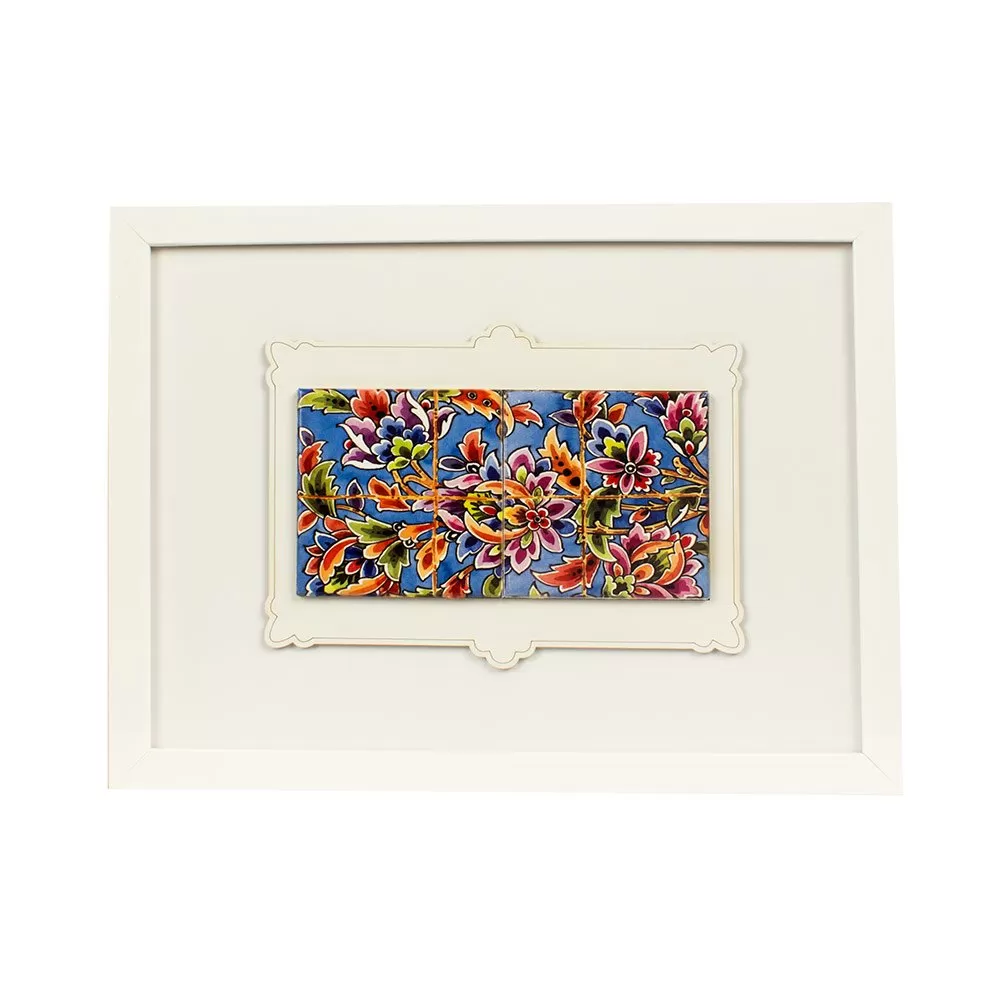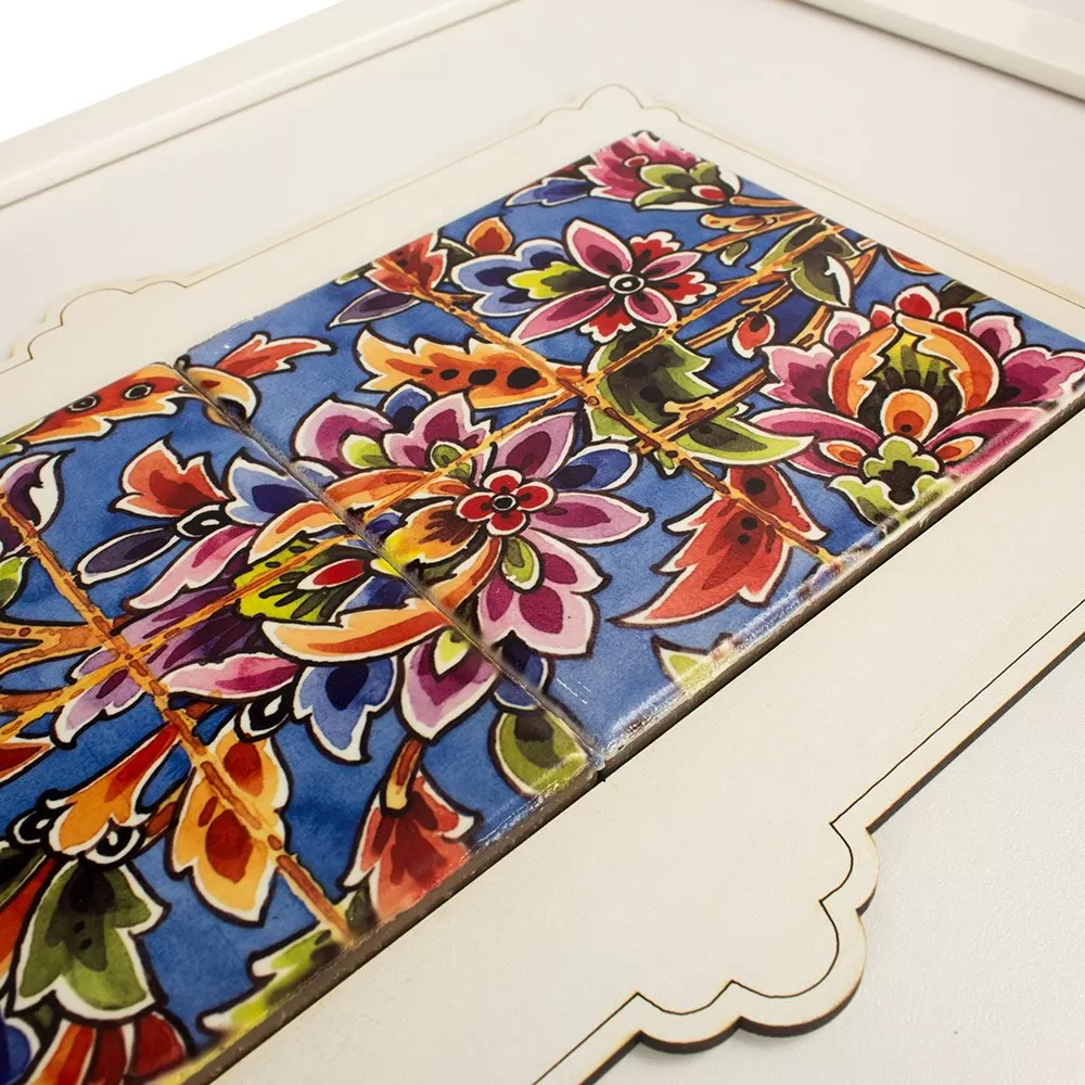 در این تابلوی دیواری ، نقشهای گل و بوته سنتی روی کاشی سرامیکی چاپ شده اند.