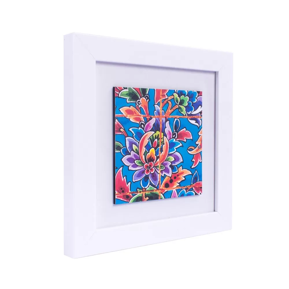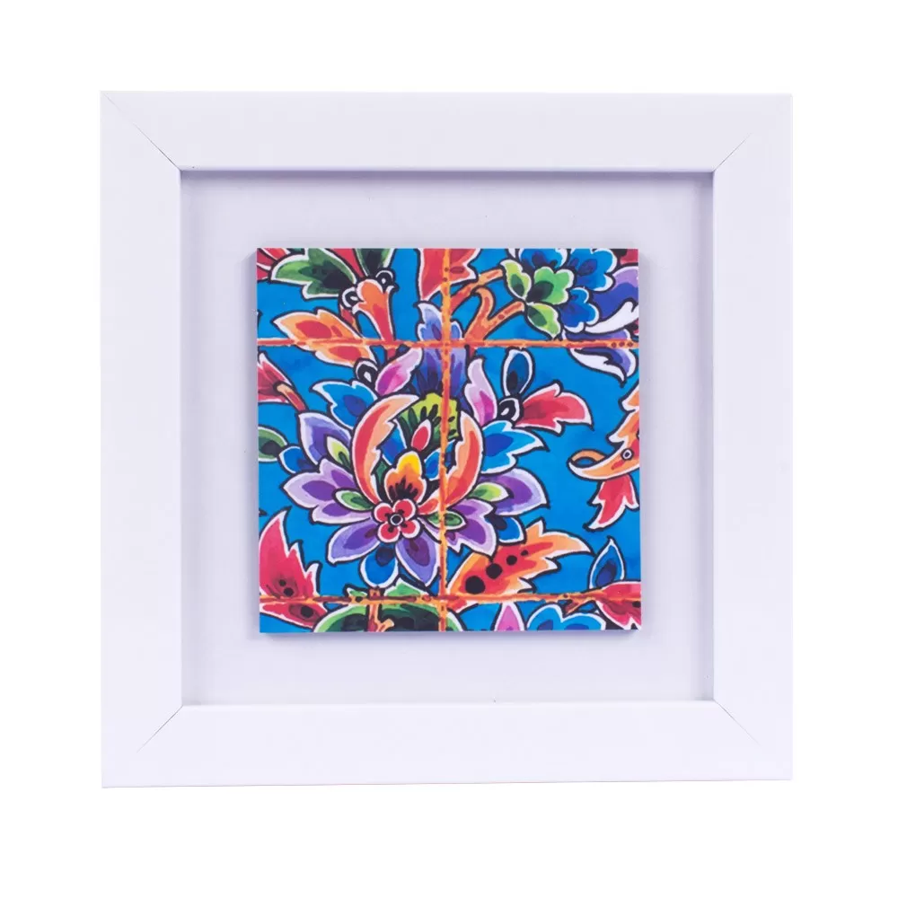 تابلوی مربعی نقاشی آبرنگ چاپ شده روی شاسی با قاب سفید 18 سانتیمتری.