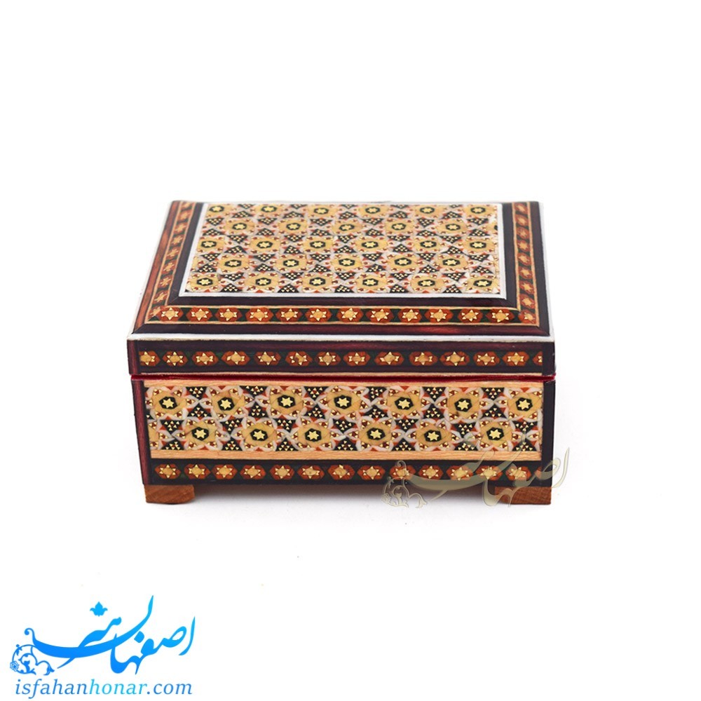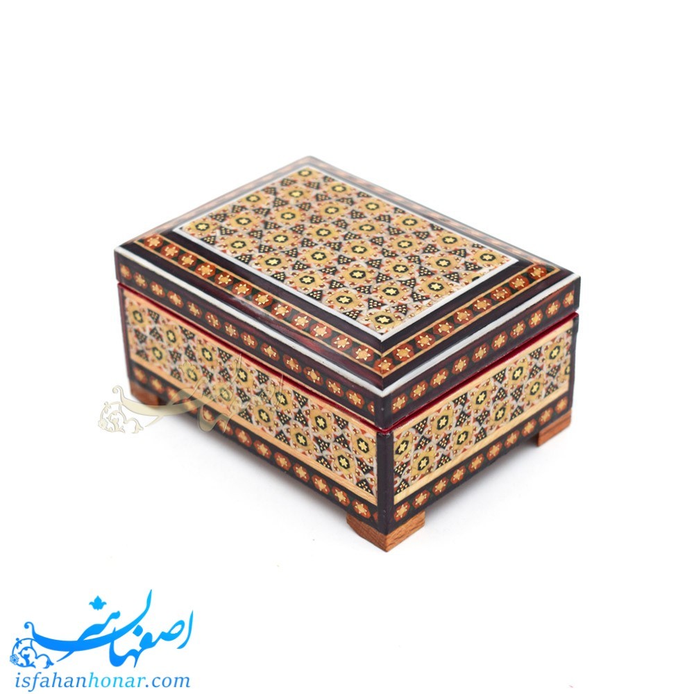 ابعاد داخلی این جعبه خاتم کاری 9×6×4 سانتیمتر است و مناسب برای قرار دادن کارت هدیه بانکی،سکه و جواهرات طلا،زعفران و... است.