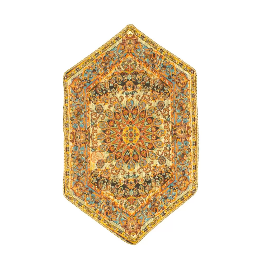 - دارای آستر همرنگ در پشت رومیزی - دور دوزی شده با نوار مغزی طلایی - قابل شستشو با دست