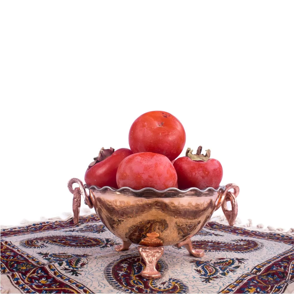 - چکش کاری دستی روی بدنه | دارای سه پایه کوتاه و دو دسته گوشواره ای مسی