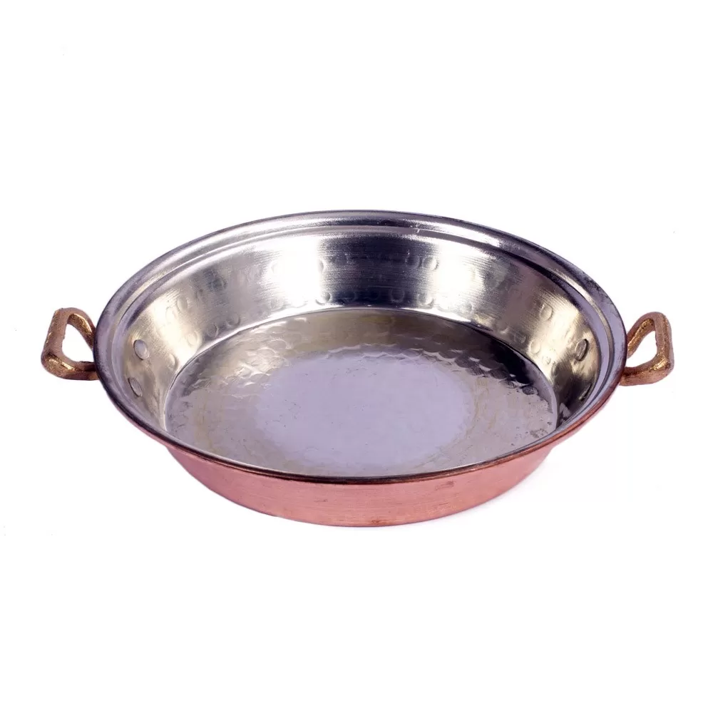 سطح بدنه این تابه مسی چکش کاری  و سطح داخلی قلع کاری شده است.