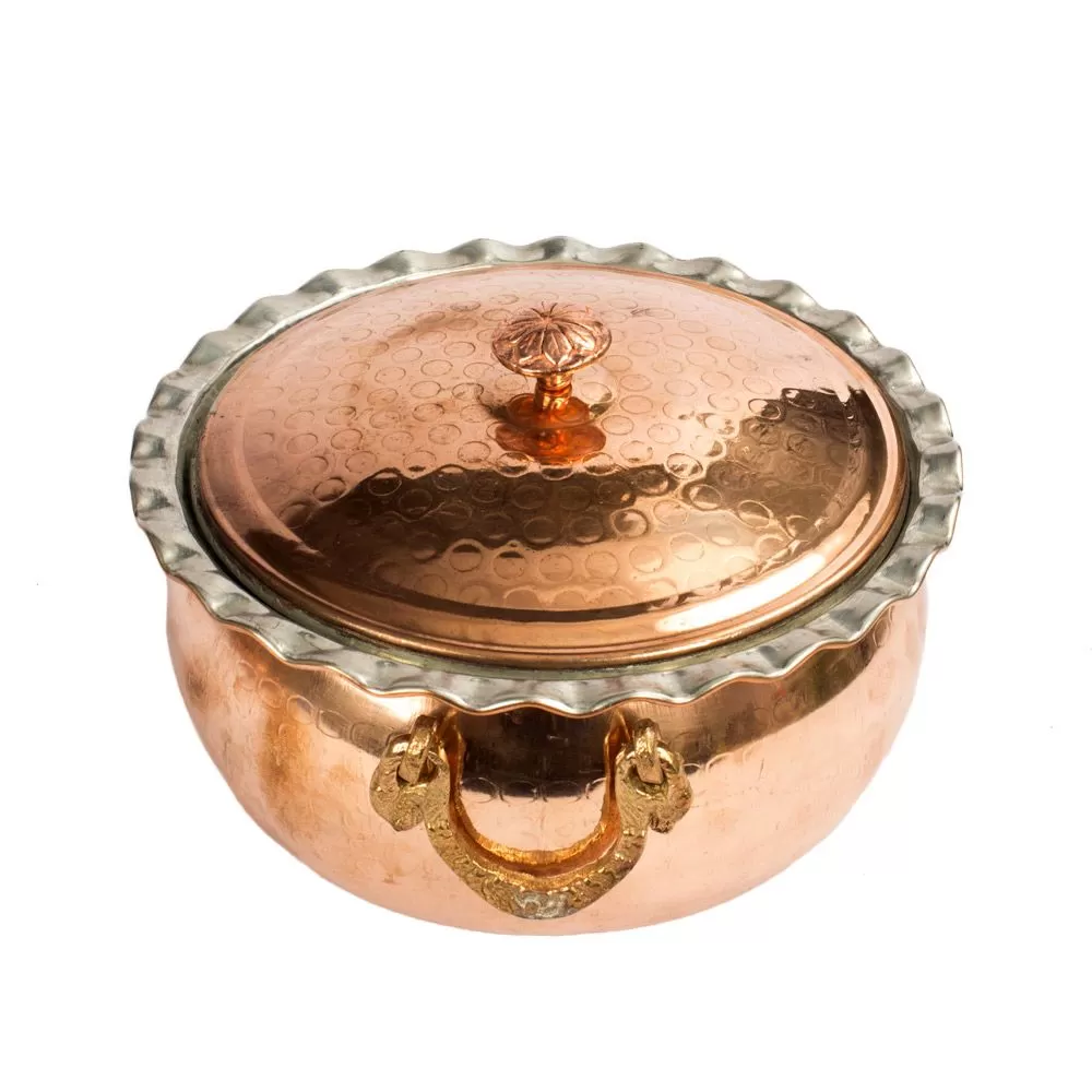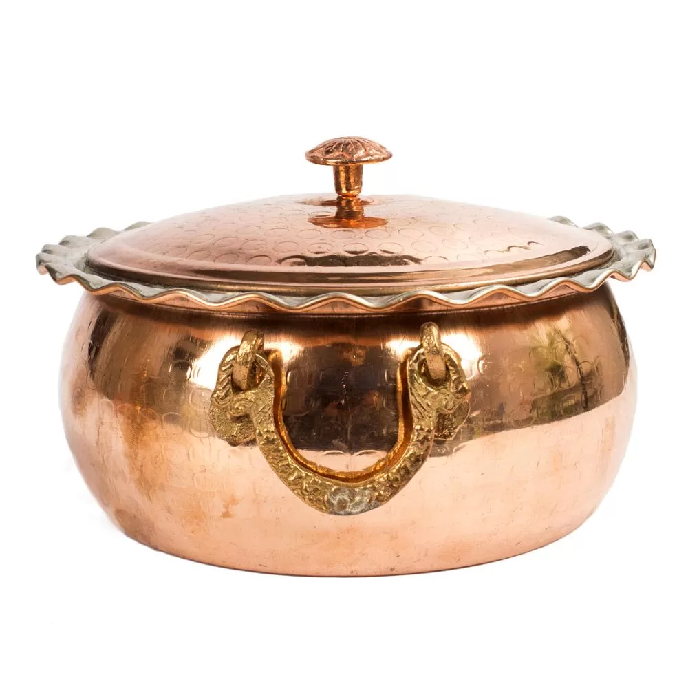 سطح داخلی این ظروف قلع کاری شده است.درب مسی دسته دار از خارج شدن بخار و گرمای داخل ظرف به بیرون  جلوگیری می کند.