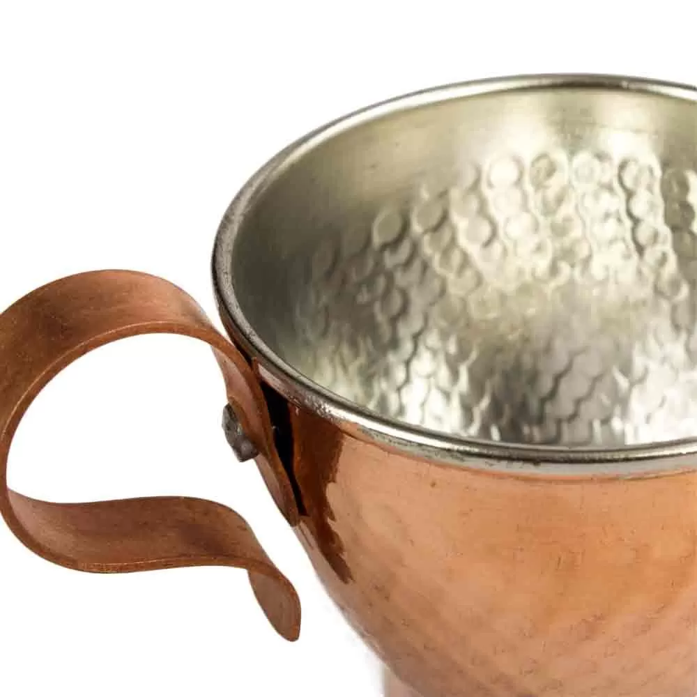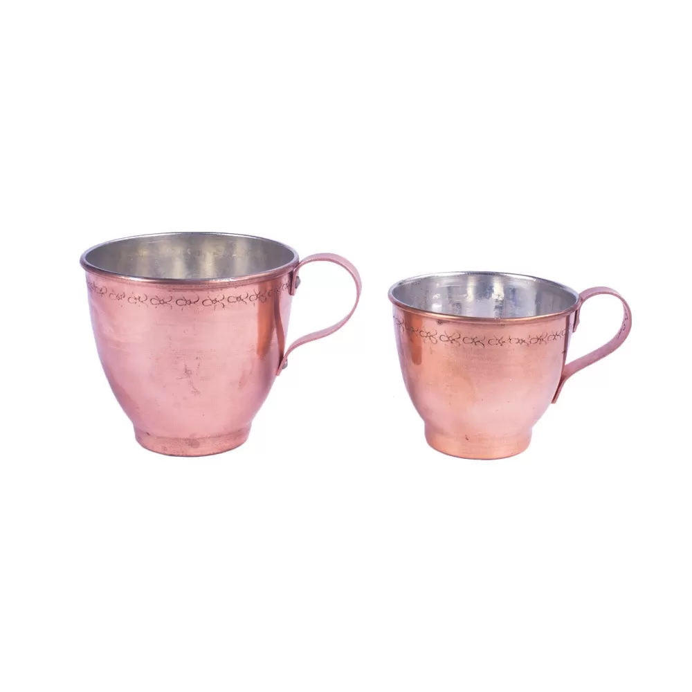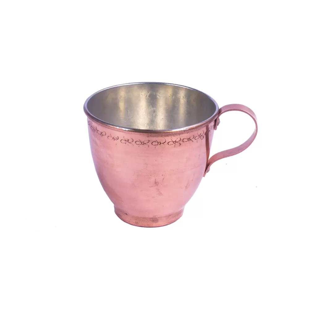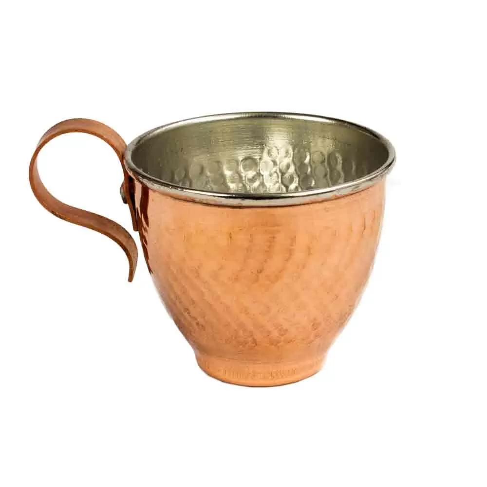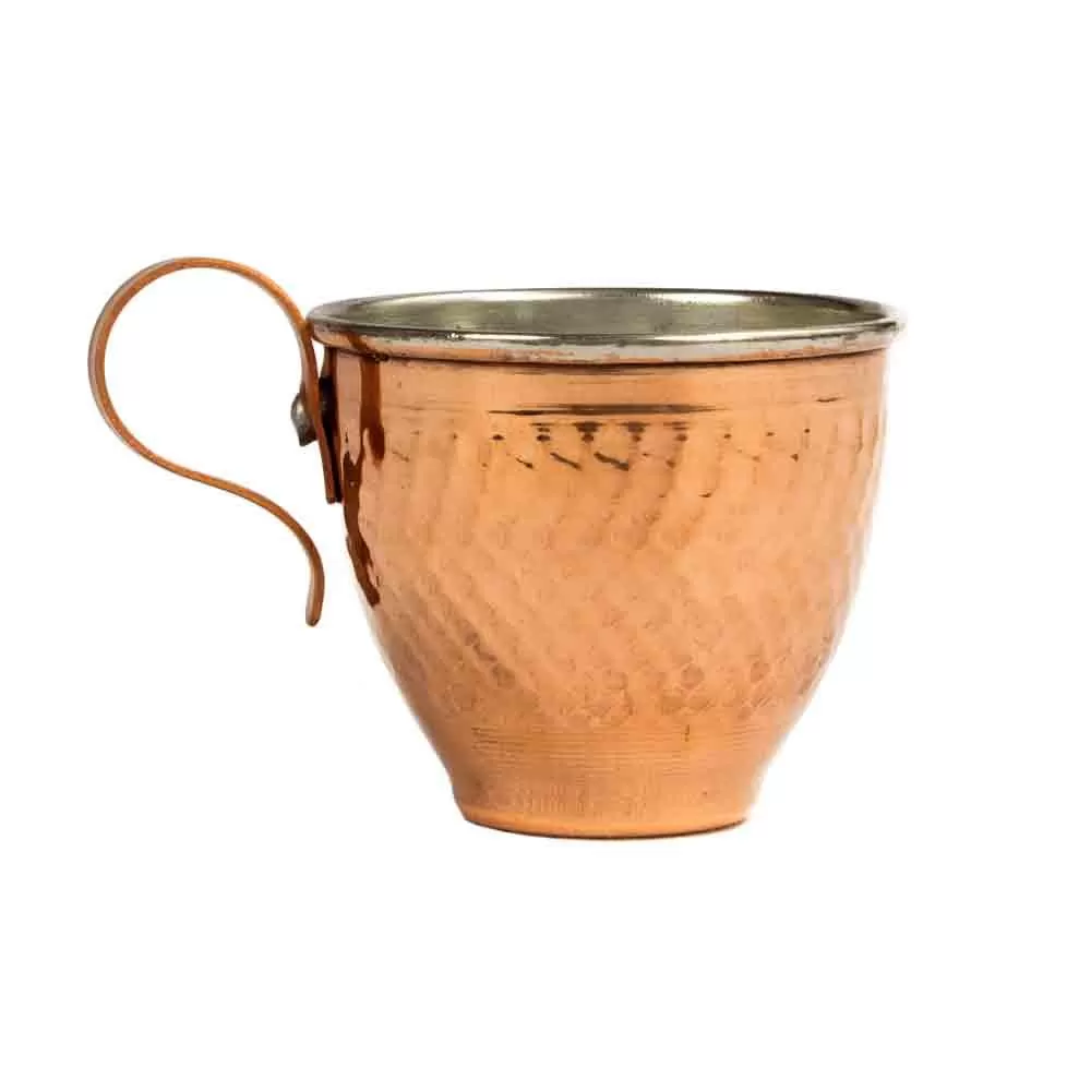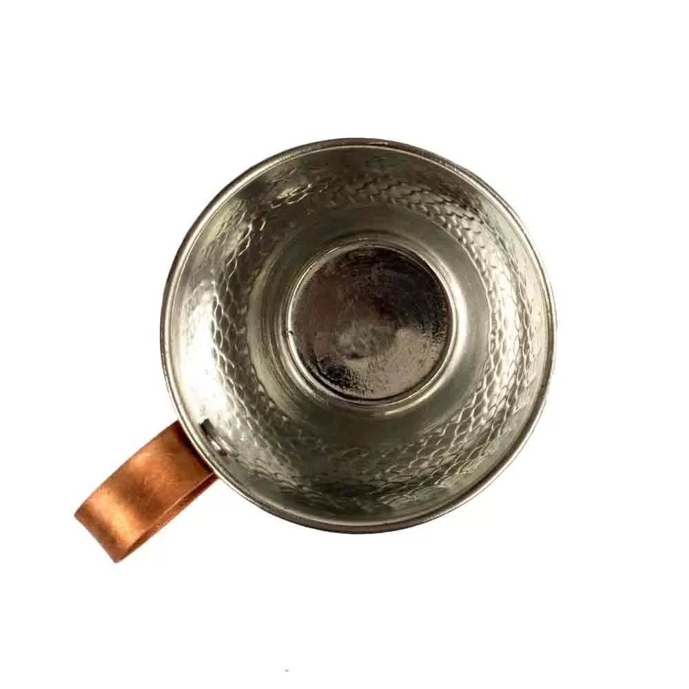سطح داخلی این فنجان مسی سنتی و جذاب با لعاب قلع سفید شده است.